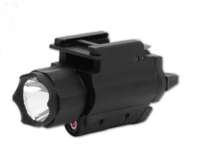 Flashlight/laser admixture arise for pistols and rifles3-watt flashlight puts out afire 120 lumensFully Adjustable 5 mW red laser sits beneath flashlightUse anniversary account alone or both at the aforementioned timeMeasures 3.37 x 1.9 x 1.44 inches (W x H x D)